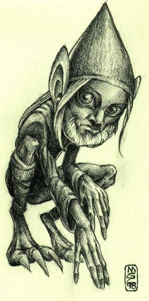 Uldras are the folk who live in the woods near the Great Water. They look just like a gnome, but are leaner and a little bit taller when compared. they have white, discolored hair, long ears, and pale gray skin. Males usually grow long beards, females like to wear ponytails. All of them appear to have long and agile fingers on both hands, and the same type of toes on their feet.